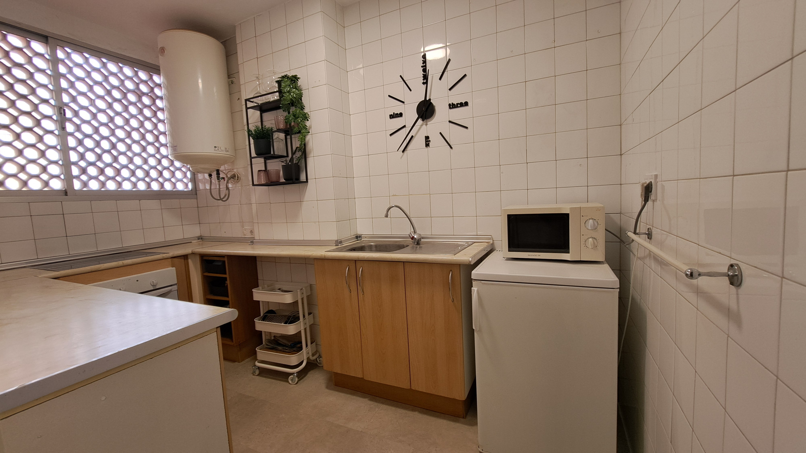 Hay una piscina comunitaria y un ascensor en el edificio. El apartamento está equipado con TV, internet (Wi-Fi), lavadora, plancha, secador de pelo, calefacción central y aire acondicionado en la zona de estar y un gran ventilador de techo en el dormitorio.