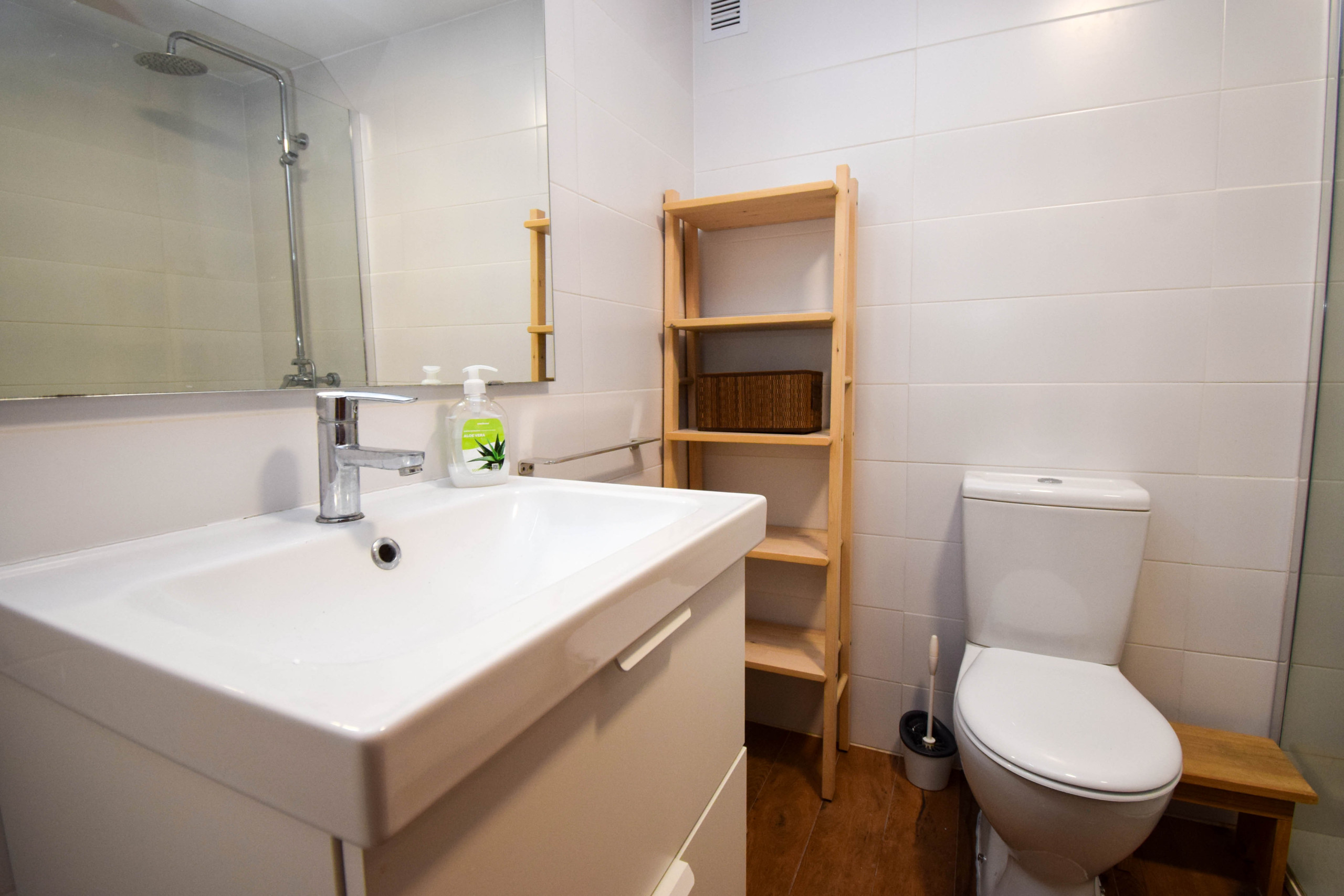 Hay una piscina comunitaria y un ascensor en el edificio. El apartamento está equipado con TV, internet (Wi-Fi), lavadora, plancha, secador de pelo, calefacción central y aire acondicionado en la zona de estar y un gran ventilador de techo en el dormitorio.