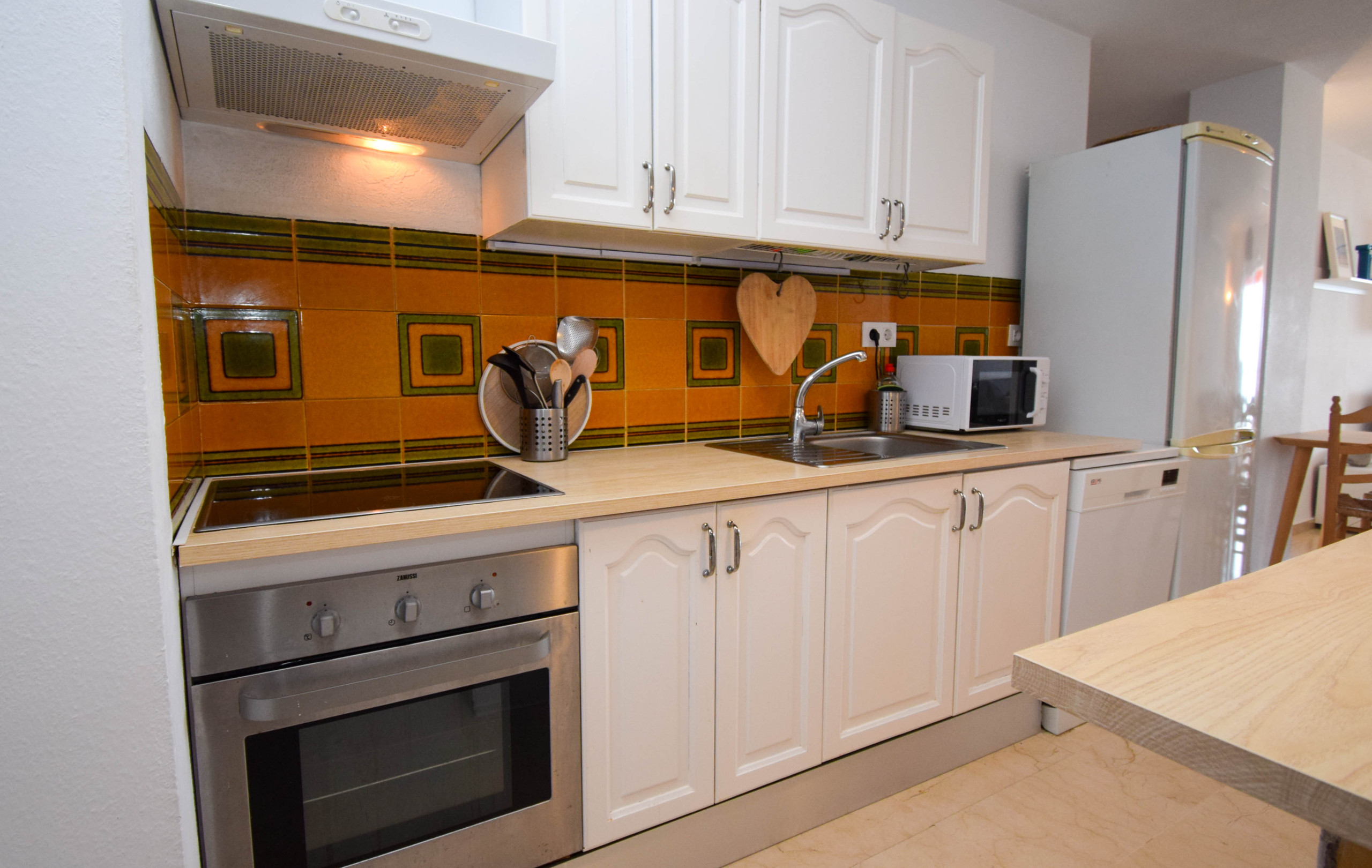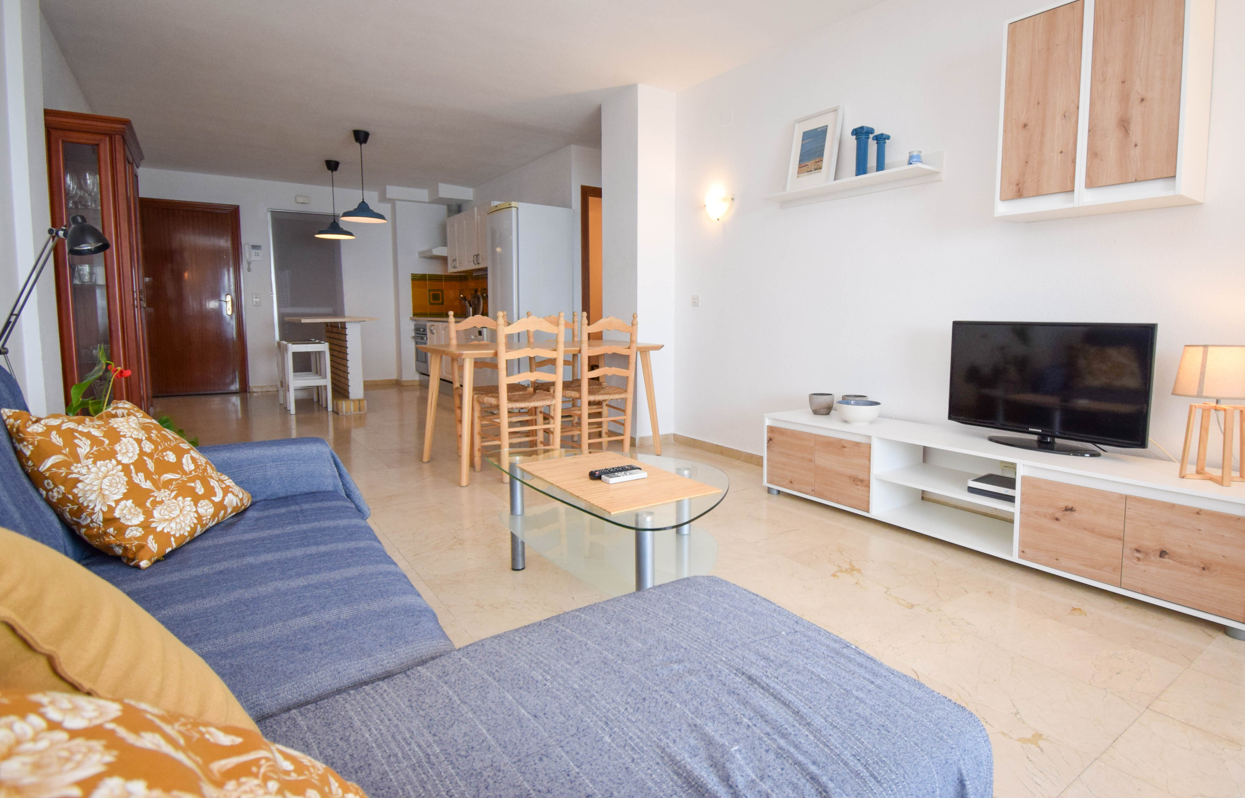 El apartamento consta de una sala de estar con un cómodo sofá cama, TV y mesa de comedor para 4 personas. Una cocina abierta totalmente equipada con los electrodomésticos y utensilios necesarios para cocinar en casa. Un agradable balcón soleado para relajarse y comer al aire libre, con hermosas vistas del mar y la playa. Un dormitorio de buen tamaño con una cama doble, que se puede dividir en 2 camas individuales, y armarios empotrados. Baño con bañera y lavadora.