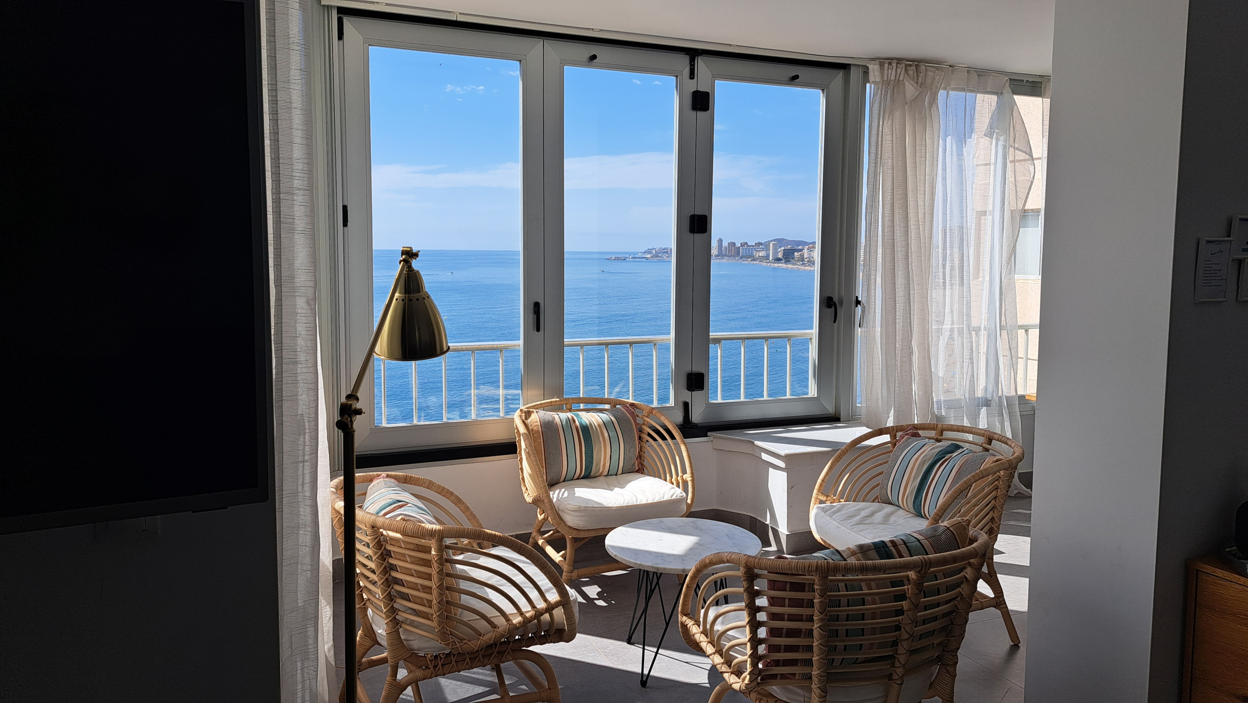 Beautiful apartment that has been refurbished to a lovely modern standard. Comfortable beds, quality bed linen and towels were very much appreciated. Spacious open plan lounge and kitchen was much enjoyed by our family of four adults and two young children. Lovely sea views with large windows that open up to let the glorious sun in.
